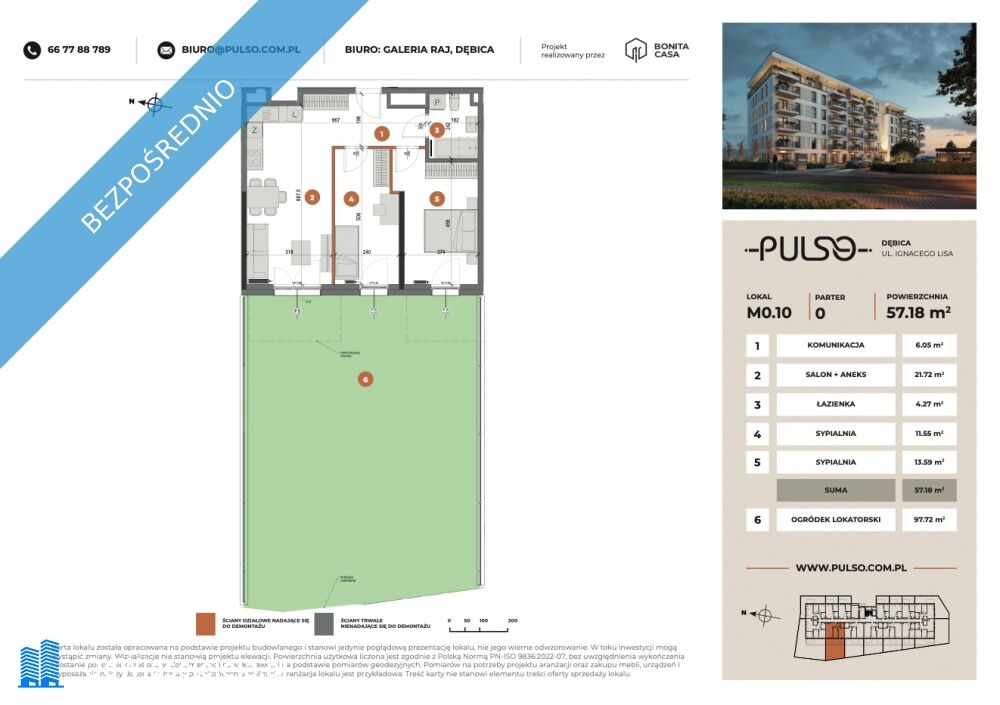 MIESZKANIE 57,18 m2 - 3 POK + OGRÓDEK 97,72 m2OFERTA BEZ PROWIZJI – BEZPOŚEDNIO OD DEWELOPERA