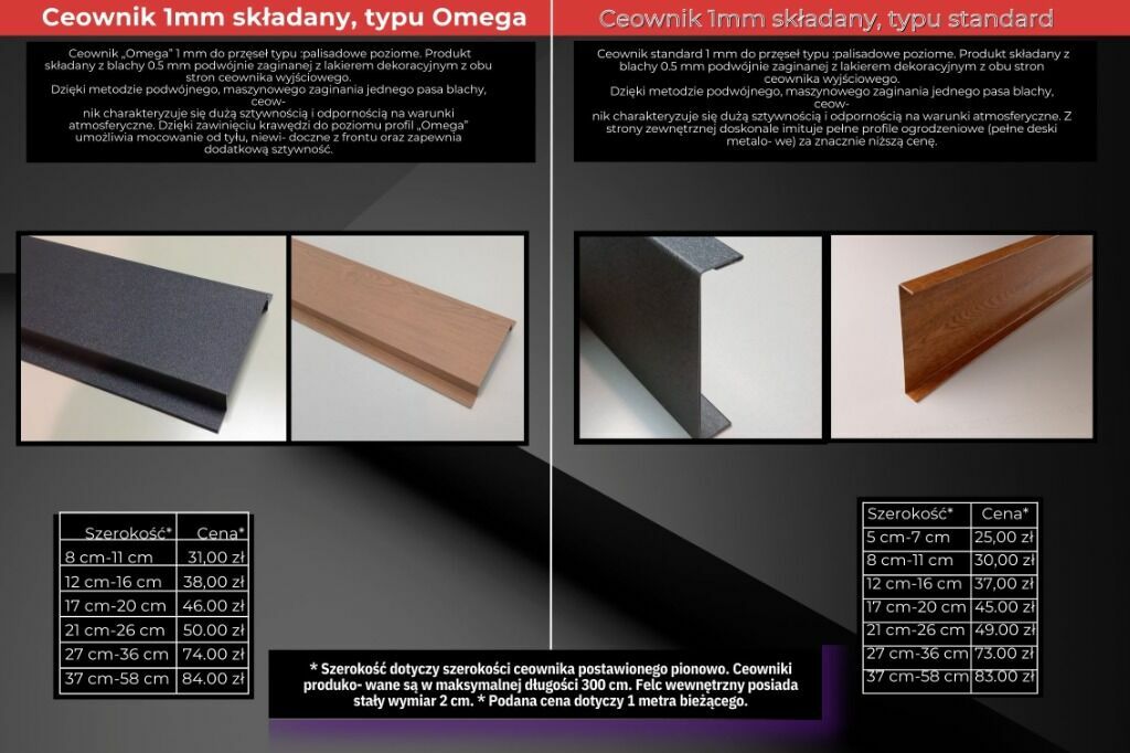 Ceowniki możemy wykonać w szerokościach innych niż standardowe np: 8 cm , 12 cm , 17 cm itd