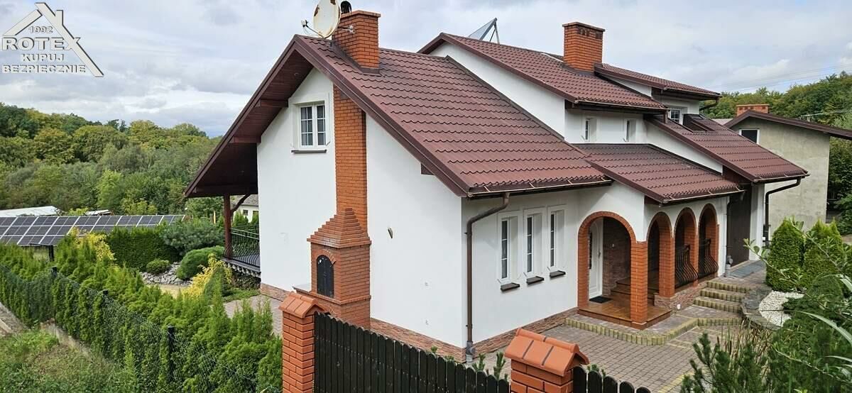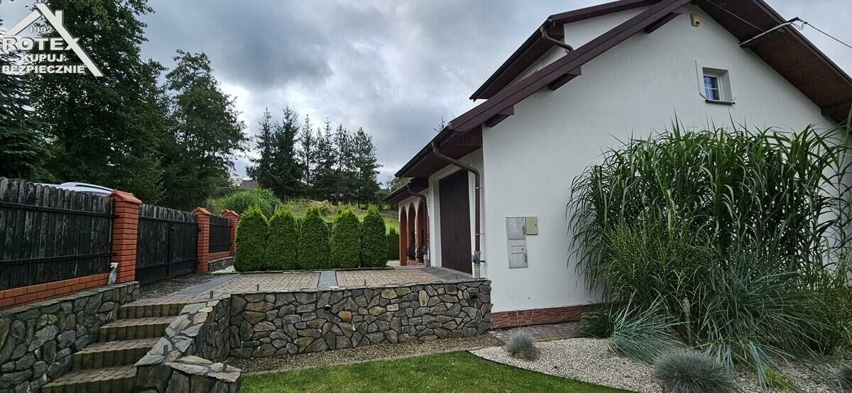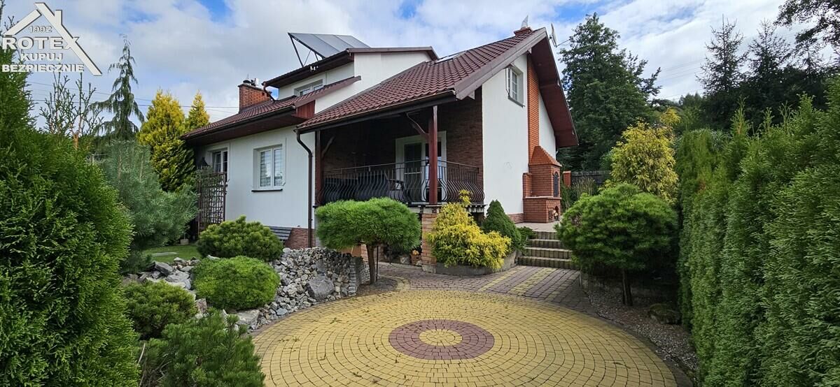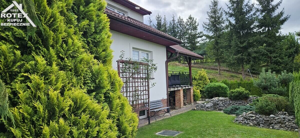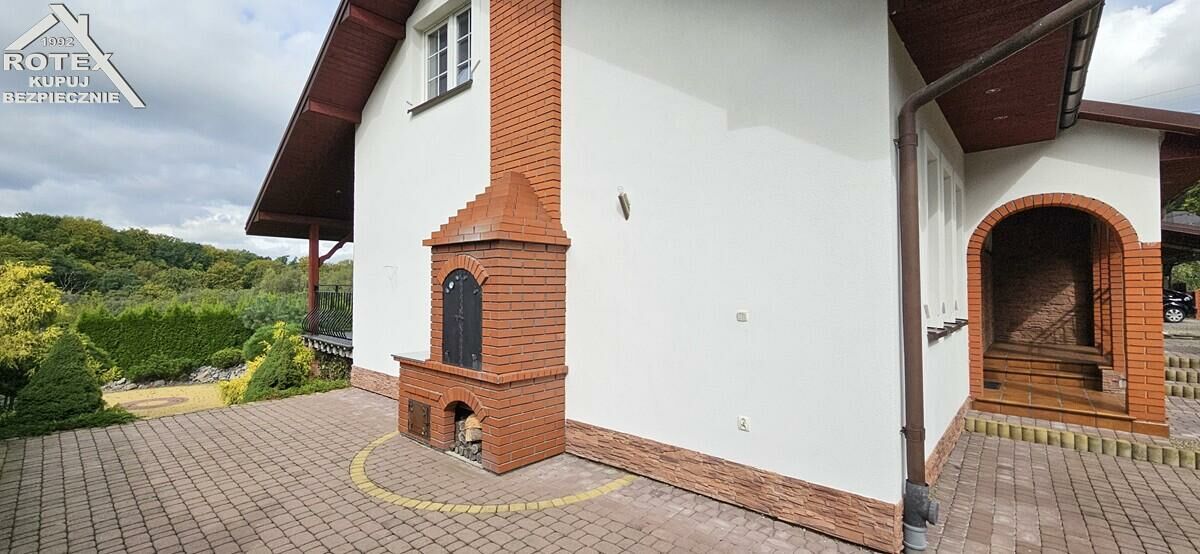 Budynek wybudowany w 2011 roku z ceramiki - MAX-styropian-cegła, dach pokryty blachodachówką, częściowo podpiwniczony, stolarka okienna PCV, na podłogach parkiet. W łazience zamontowana komfortowa wanna z jacuzzi. Ogrzewanie stacjonarne oraz częściowo podłogowe, piec węglowy plus ogrzewanie elektryczne. Do budynku dobudowany murowany grill z możliwością wędzenia. Zainstalowana fotowoltaika o mocy 15KW oraz 3 solary do podgrzewania ciepłej wody. Działka o powierzchni 87.8ara z możliwością wydzielenia kolejnych działek, dodatkowo zabudowana podpiwniczonym budynkiem garażowo-gospodarczym - garaż dwustanowiskowy z funkcją adaptacji poddasza. Piękny, zagospodarowany ogród - 50 drzew owocowych oraz krzewów dekoracyjnych, częściowo zalesiony. Teren uzbrojony w wodę, gaz, prąd, kanalizacja-szambo. Wybudowany tor off-road do jazdy quadem. Możliwość zrobienia rekreacyjnego stawu.