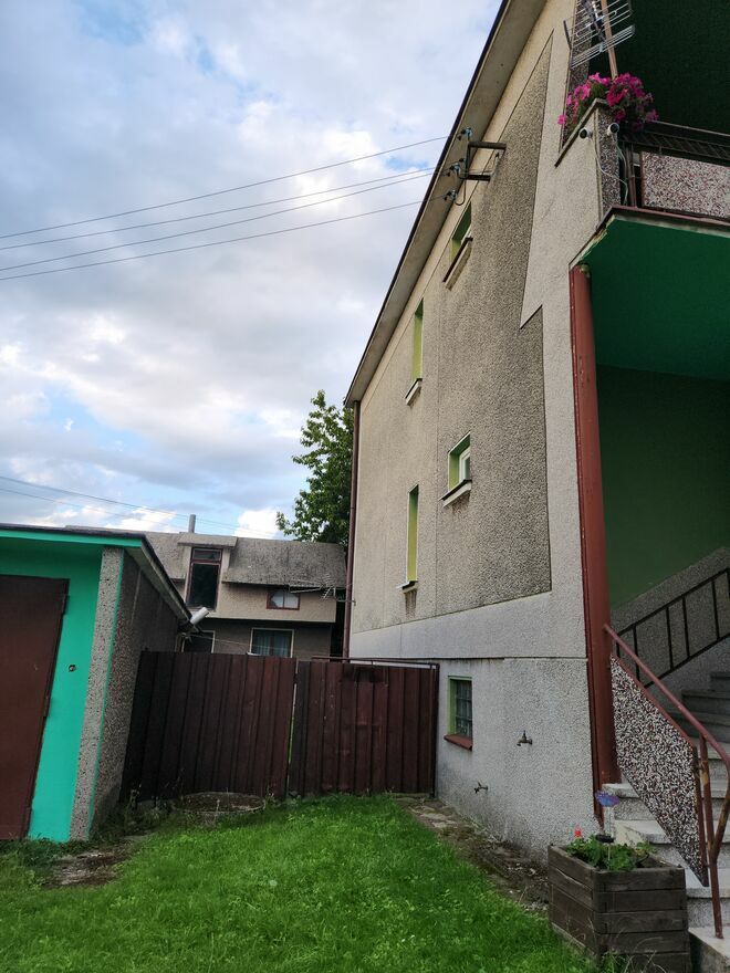 Dom jest murowany cegłami, dach pokryty blachą, piętrowy 5- cio pokojowy. Instalacja grzewcza gaz (oraz również na węgiel) rozdzielona na 2 poziomy. Mogą mieszkać oddzielnie 2 rodziny. Blisko położone są sklepy, szpital, szkoła, kościół.