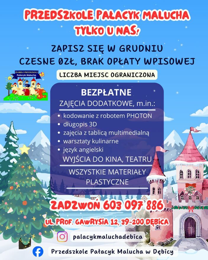 Zapraszamy do kontaktu pod nr telefonu: 603 - pokaż numer telefonu - , 14 6257142 lub w sekretariacie przedszkola Dębica ul. Prof. Gawrysia 12 .